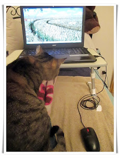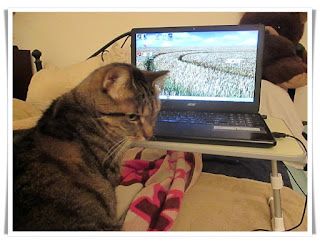 I don't know if you can tell but I've got all four of my cold pawsies on her bare skin.